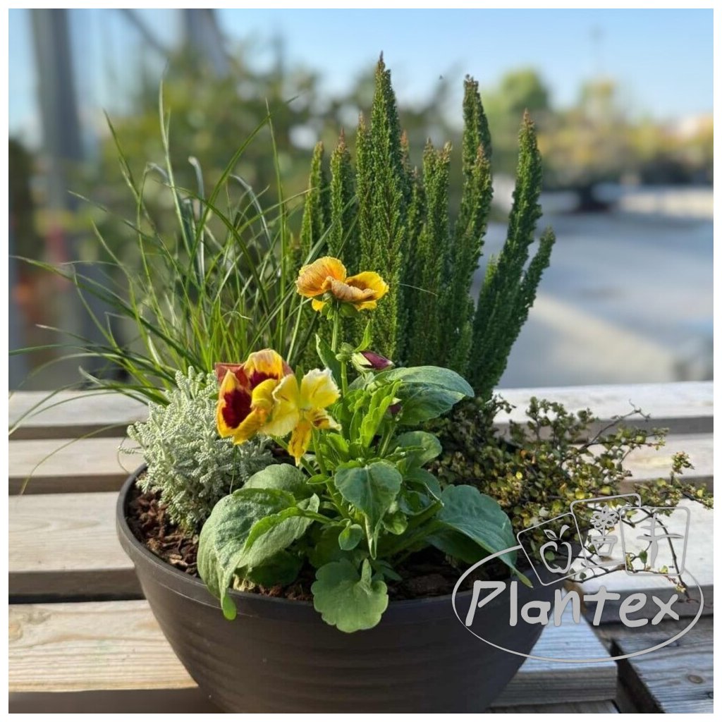 Výnimočná jesenná výsadba, ktorá nie je len esteticky príťažlivá, ale aj praktická. Rastliny sú vyberané tak, aby boli nenáročné na starostlivosť, a pritom prinášali radosť. Je ideálna ako darček pre milovníkov prírody alebo ako elegantný doplnok na Vašu terasu, balkón či záhradu.