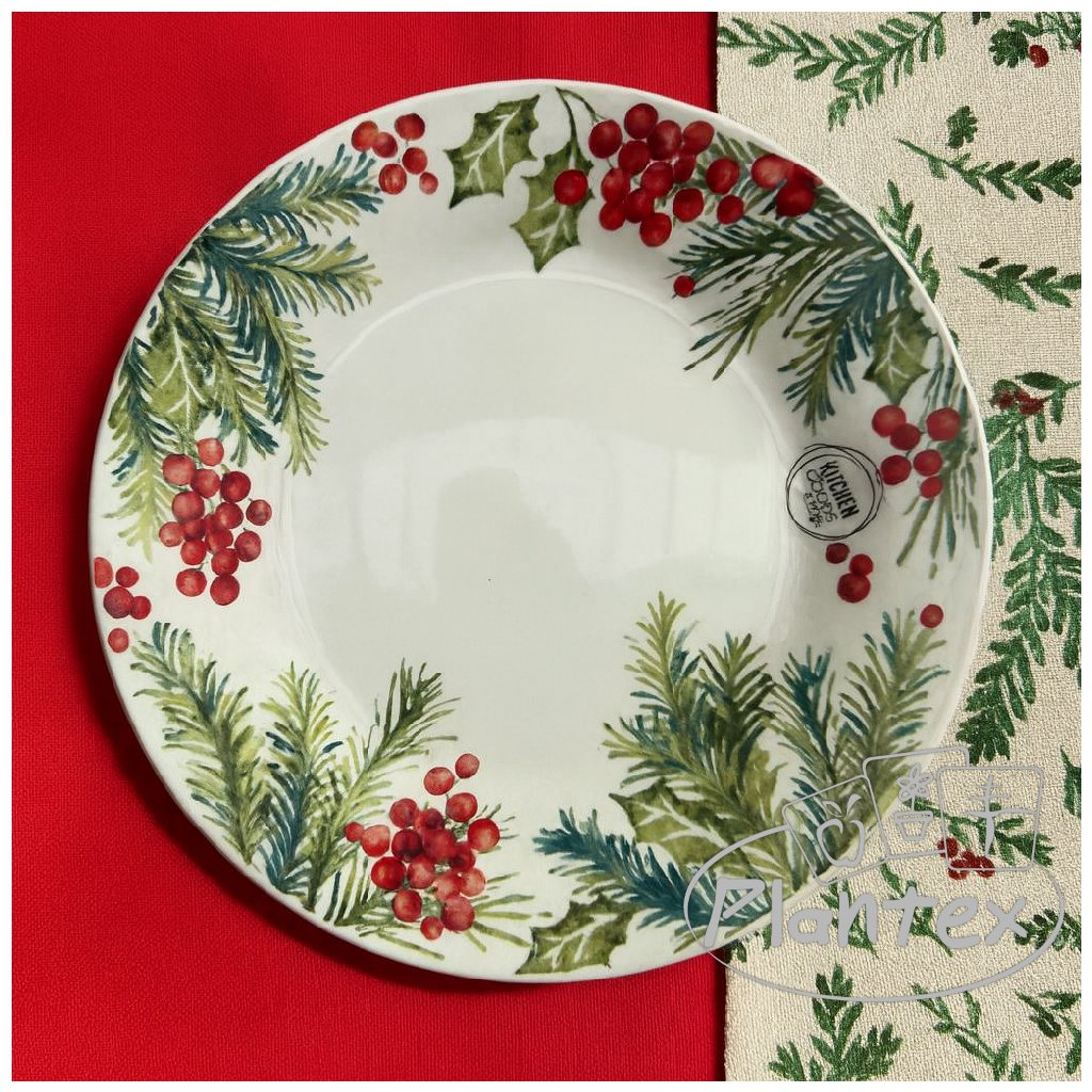 Dekoratívny tanier s červenými bobuľkami a ihličím. Dokonale sa hodí pod jedálenský tanier alebo ako ozdoba do stredu stola.