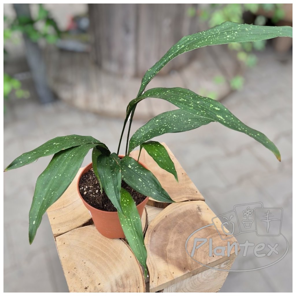 Aspidistra ‘Milky Way’ – nenáročná izbová rastlina s tmavozelenými listami posiatymi jemnými bielymi bodkami pripomínajúcimi hviezdnu oblohu. Ideálna do tieňa a polotieňa, odolná voči suchu aj menej priaznivým podmienkam, vhodná do domácností aj kancelárií.