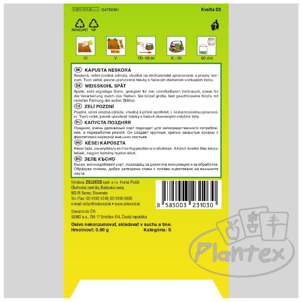 ZELSEED - SEMENÁ KAPUSTA NESKORÁ POUROVO POZDNÍ