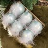 SKLENENÁ VIANOČNÁ OZDOBA - BLEDOMODRÁ S PÁVOM (7 CM) - SADA 6 KS