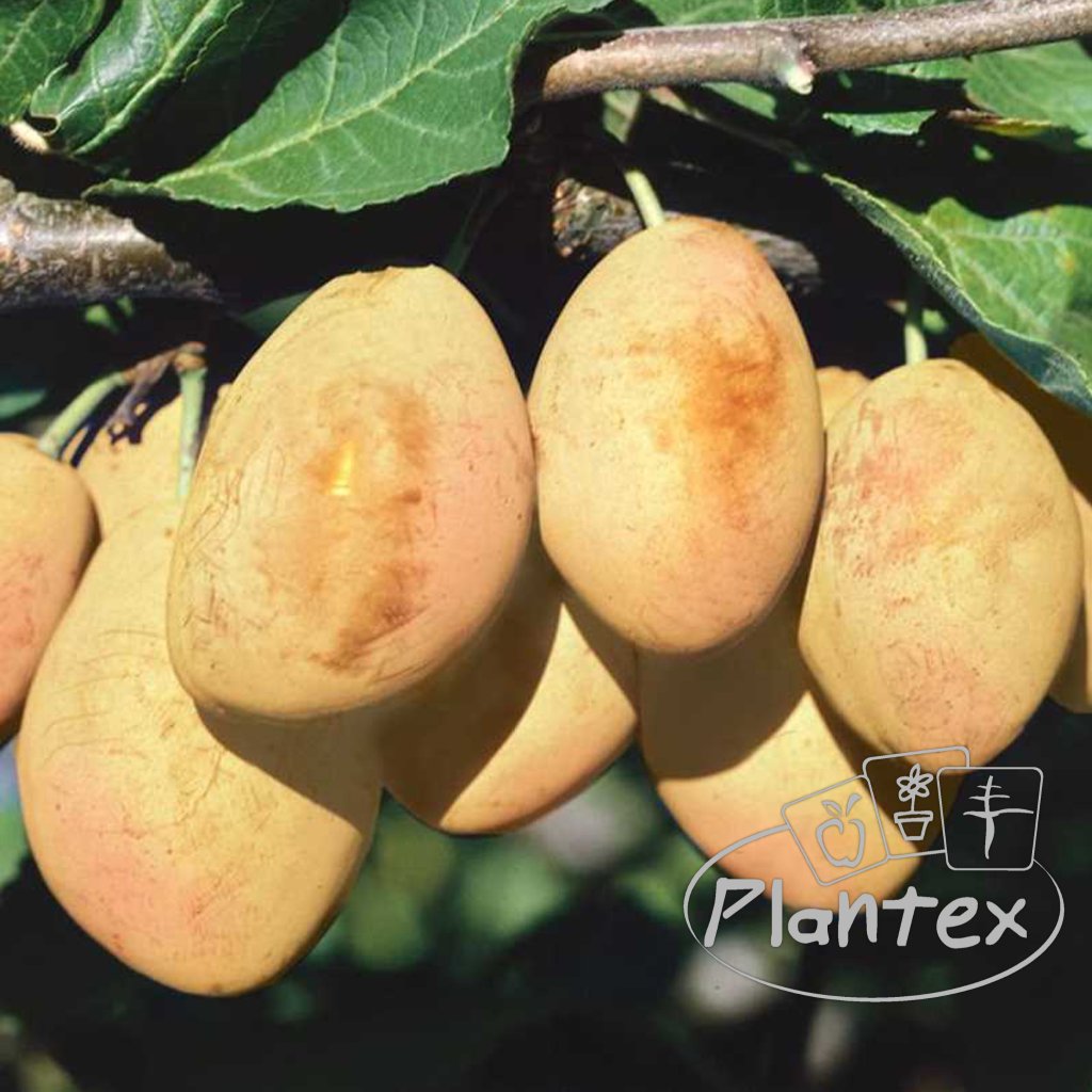 Plod - stredne veľký, priemerná hmotnosť 35 - 40 g, smerom k stopke je pretiahnutý; šupka je zlatožltá, miestami s ružovým nádychom, osrienená; dužina bledožltá, šťavnatá, dobre oddeliteľná od kôstky; chuť je veľmi sladká, harmonická, má vyšší obsah cukrov; vhodné na priamy konzum, spracovanie, pálenie