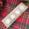 Kovový dekoračný svietnik s panoramatickým motívom domčekov, kombinovaný s podnosom z odolného dreva bude skvele vyzerať v každom interiéri. Môžete ho použiť aj ako adventný svietnik. Kalíšky na sviečky sú z kvalitného kovu.