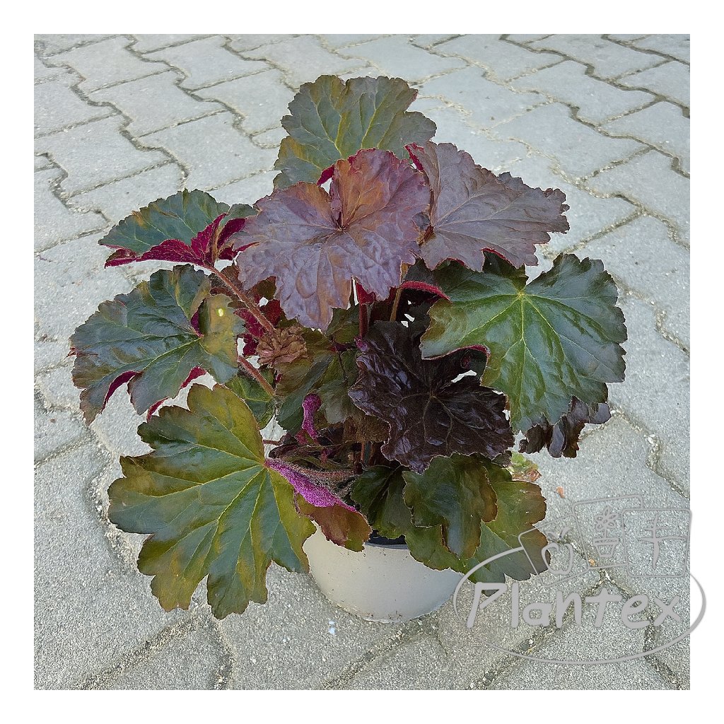 Heuchera 'Palace purple' je trvácna rastlina s tmavobordovými listami. Listy sú výrazné vďaka svojmu metalickému lesku a purpurovej žilnatine, ktorá môže meniť farbu v závislosti od intenzity svetla. Rastlina sa vyznačuje aj drobnými bielymi kvetmi, ktoré vyrastajú na vysokých stonkách. Vhodná na pestovanie v záhonoch, v nádobách na terasách alebo balkónoch. Táto rastlina preferuje polotieň a vlhkú pôdu, ale je relatívne odolná voči suchu a môže sa prispôsobiť rôznym podmienkam rastu. Heuchera 'Palace Purple' pritiahne pozornosť svojou atraktívnou farbou a bude skvelým doplnkom pre akúkoľvek záhradu.