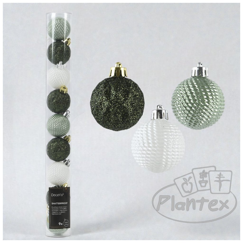 VIANOČNÁ OZDOBA - BIELO - ZELENÁ SADA GÚĽ (9 KS)
