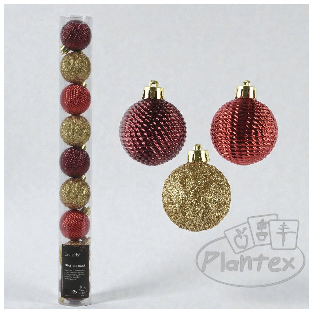 Vytvorte si vianočnú atmosféru vďaka krásnej červeno-zlatej sade vianočných ozdôb. Môžete ich využiť na doplnenie interiérovej výzdoby alebo ich klasicky umiestniť na vianočný stromček. Sada obsahuje 9 kusov vianočných gúľ s priemerom 4 cm.