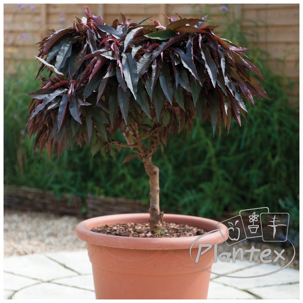Okrasný zakrpatený ovocný stromček s lákavým exotickým vzhľadom. Má dekoratívny charakter - na jar kvitne rúžovými kvetmi a potom sa tvoria tmavočervené až bordové listy. Veľké sladké plody dozrievajú v auguste. Zvykne sa pestovať v črepníkoch na balkónoch, terasách, či v menších záhradách. Vyrastie do maximálnej výšky 1,5 - 2 m. Dužina plodov je šťavnatá, žltej farby.